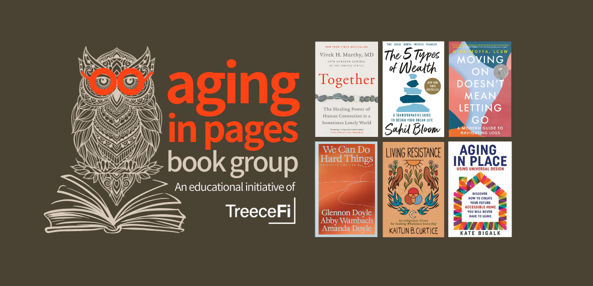 Aging in Pages is a bimonthly online book discussion group created by TreeceFi to help you think more clearly about aging, purpose, relationships, health, housing, and legacy—the same life areas that shape long-term financial decisions. Facilitated by Team Treece member David Traupman.