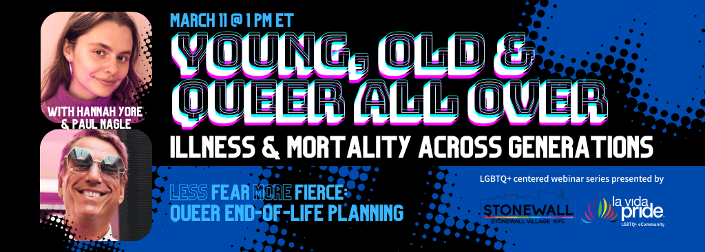 How do experiences of serious, life-limiting illnesses or conditions and facing mortality differ between younger queer and older LGBTQ+ people? What wisdom and fears do we share, and where do our paths diverge?